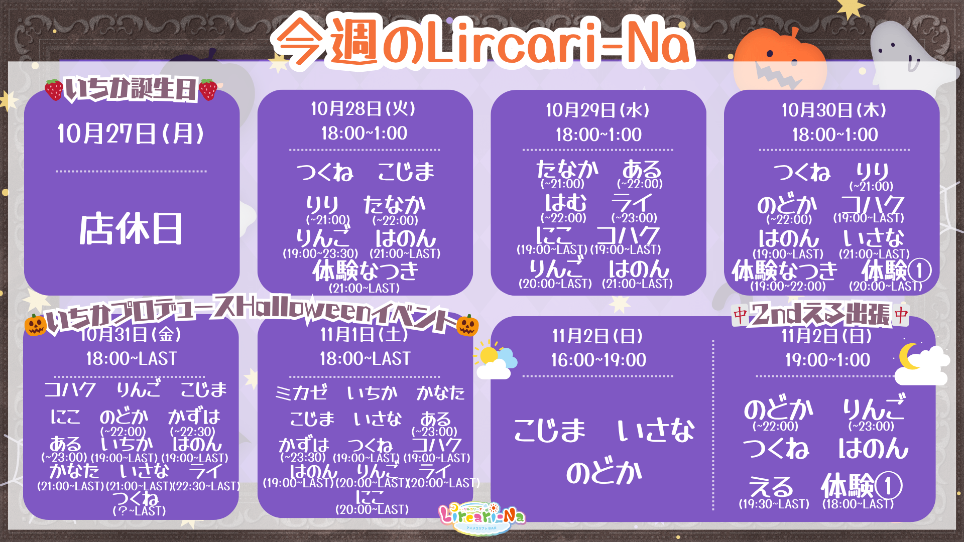 🎃🦇🕯出勤表 🎃🦇🕯