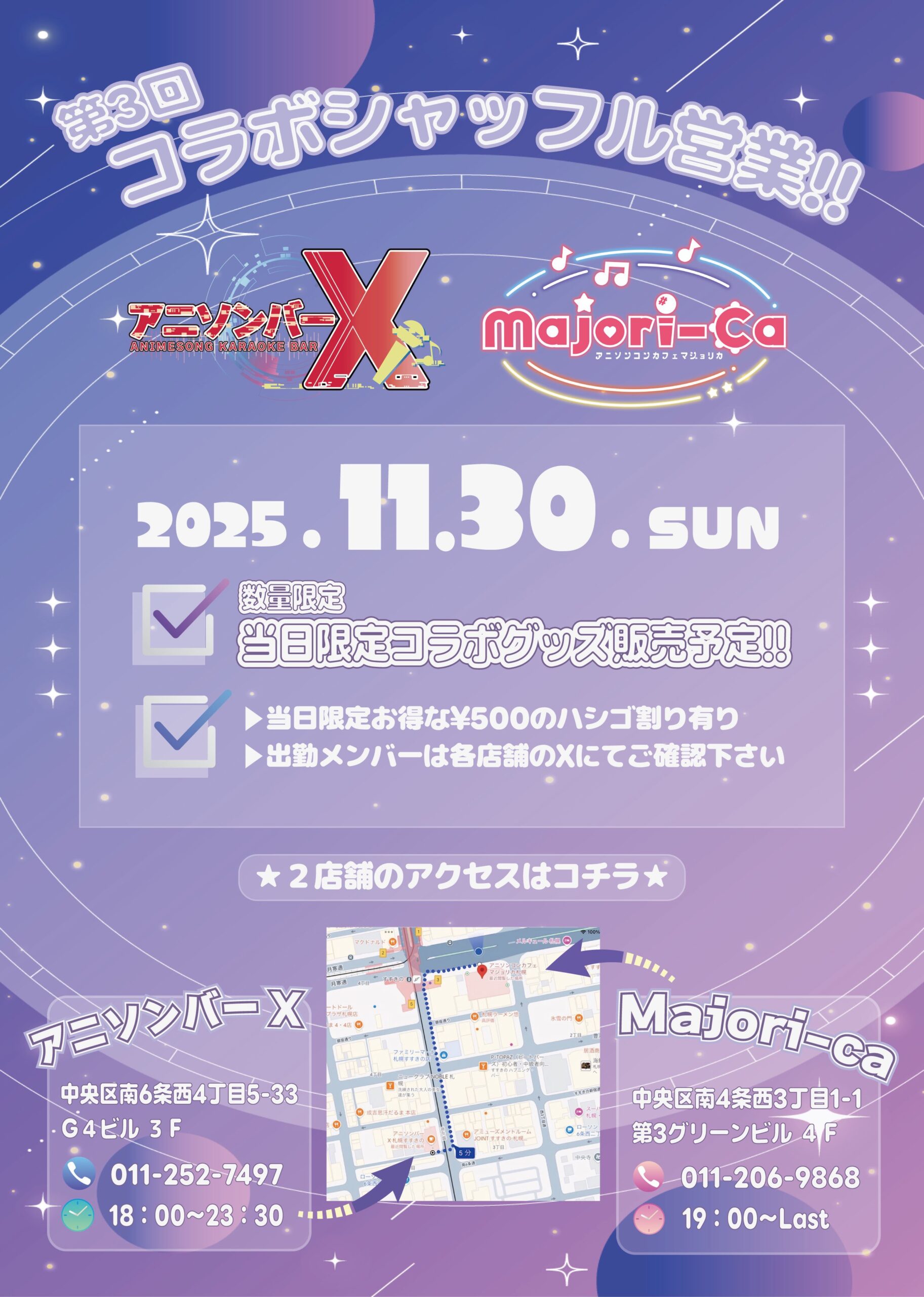 またまたアニソンバーXさんとコラボシャッフル営業をさせていただくことになりました‼️わーい‼️👏👏